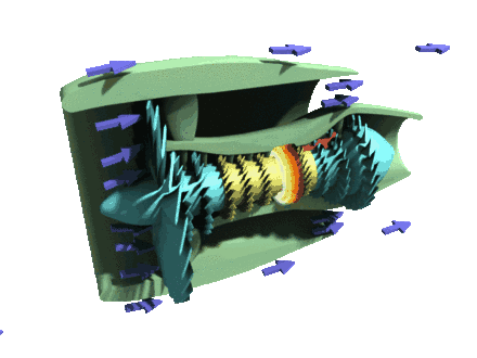 渦輪風扇發動機,大型運輸機的發動機。渦扇氣路兩條,外邊這條提供基本70-80%的推力,里邊這條僅提供20-30%的推力。
